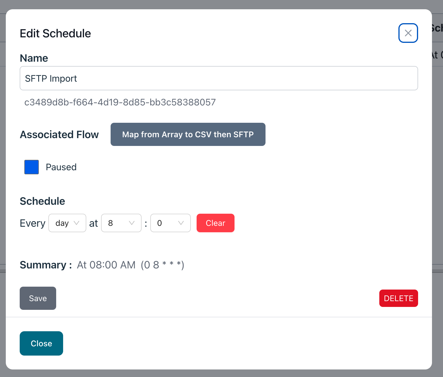 The Cron string and a textual summary is shown as you make changes to the Schedule.