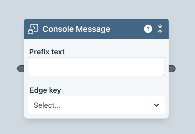 Output a message to the console pane in the Ziggy UI. It outputs the specified edge key data and optionally prefixes it with a text label.