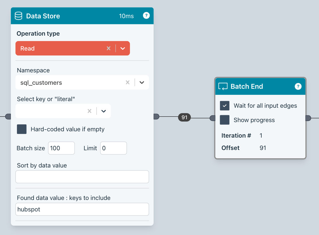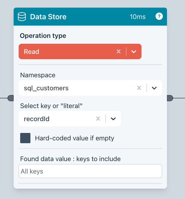 You can also read data from the data store using values specified in the incoming edge data.
