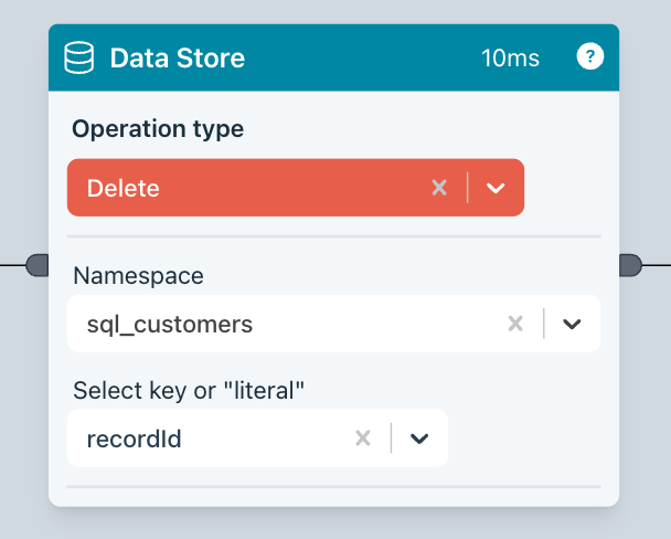 Ziggy will fetch all the Data Store key/value pairs based on what you specify in the Select key or "literal" field - recordId in the screenshot below.