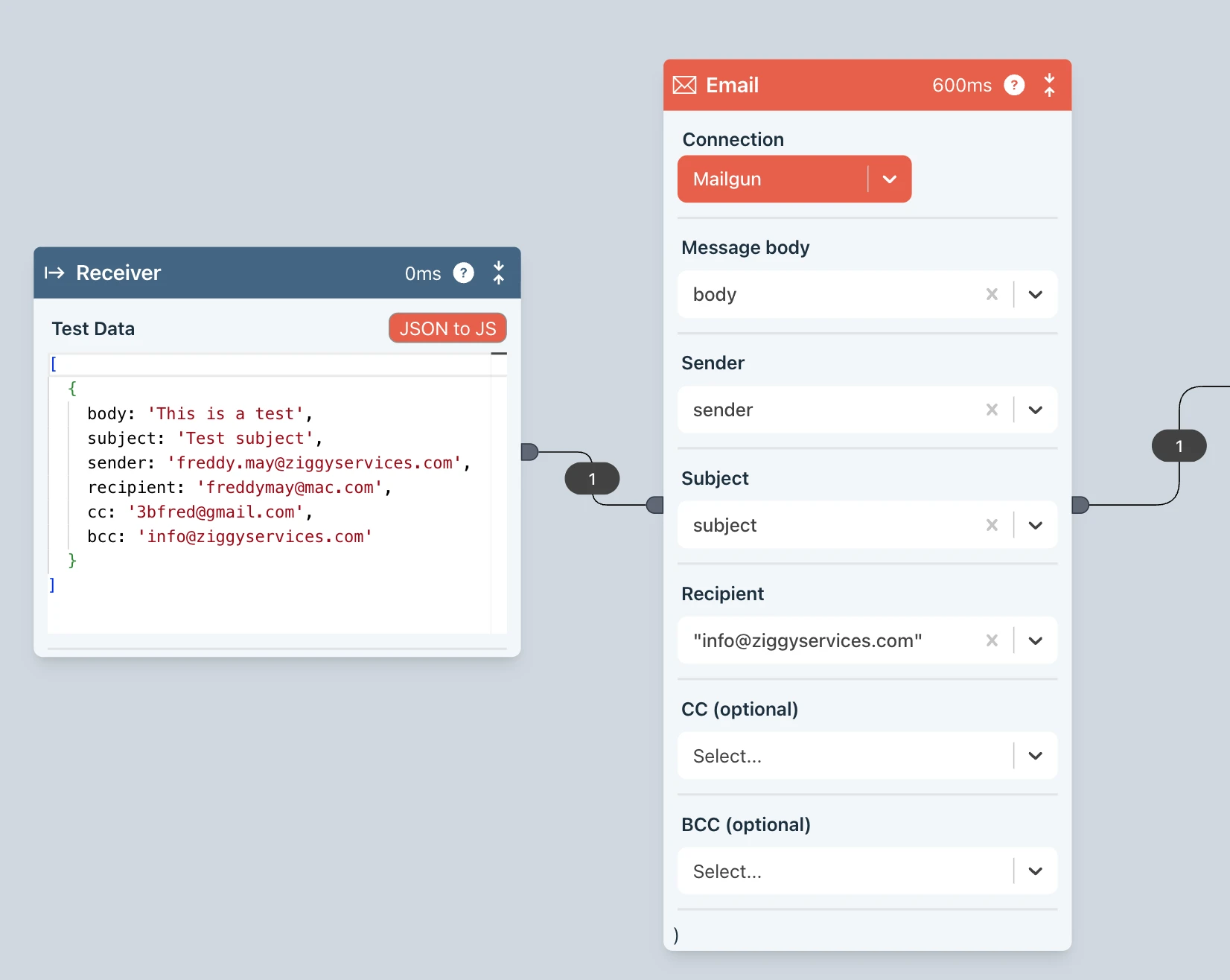 "your value"(use double quotes). You can see this in the above screenshot for the Recipient field"info@ziggyservices.com".